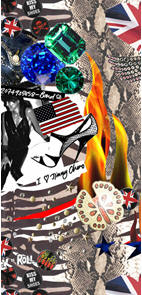 Kroz cijelu se kolekciju provlači print koji je kolaž prepznatljivih Jimmy Choo motiva: zmijske kože, kože bogato ukrašene zakovicama, naškrabanog telefonskog broja njihova dućana u ulici Bond u Londonu, a ako pozornije pogledate vidjet će te fotografiju Mellon sa snimanja za talijanski Vogue.