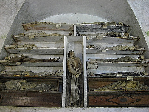 Jedno od najposjećenijih ali i najstrašnjiih mjesta koje turisti mogu obići u Palermu je Kapucinski samostan iz 17. stoljeća, koji je javnosti otvorio jećasvoje katakombe u kojima su se, na pomalo bizaran način, pohranjivali posmrtni ostaci poznatih građana Palerma. Prema macabre običaju, koji je tijekom 17. i 18. stoljeća bio popularan na ovom području, u podzemne je prostorije ovoga samostana sahranjeno, ili bolje reći – izloženo gotovo osam tisuća tijela crkvenih dostojanstvenika i pripadnika bogate buržoazije Palrema, uključujući žene i djecu. Ovaj običaj, koji s u to vrijeme smatrao osobitom čašću za pokojnika a osobito za njegovu obitelj, postao je zabranjen i ilegalan 1881. Danas su očima javnosti otvorena vrata ovih dugih hodnika prepunih kostiju, poluraspadnutih i mumificiranih tijela, koja, unatoč najsjajnijoj odjeći i dragocjenostima s kojima počivaju u vječnom snu, izazivaju strah i nelagodu. Svi vi slabijeg želuca, srca i osjetiljivije naravi, zaobiđite ovo mjesto.