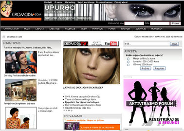 Ovih dana hrvatski modni portal CroModa.com proslavio je godinu dana postojanja. Projekt je pokrenut u listopadu 2007. godine, s ciljem stvaranja jake web-prezentacije svih modnih događanja u Hrvatskoj, regiji i svijetu.