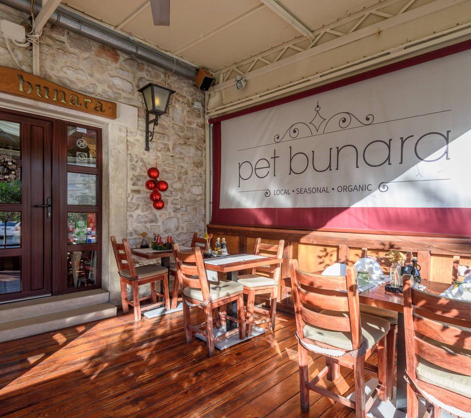 Pet Bunara vodi se, u svijetu sve zastupljenijom, Slow Food filozofijom i u skladu s tim pristupamo pripremi svakog jela. Jelovnik mijenjamo ovisno o godišnjim dobima kako bi namirnice koje koristimo uvijek bile svježe i, naravno, iz organskog uzgoja, zbog toga nije iznenađujuće da imaju preko 1350 recenzija na TripAdvisor-u.