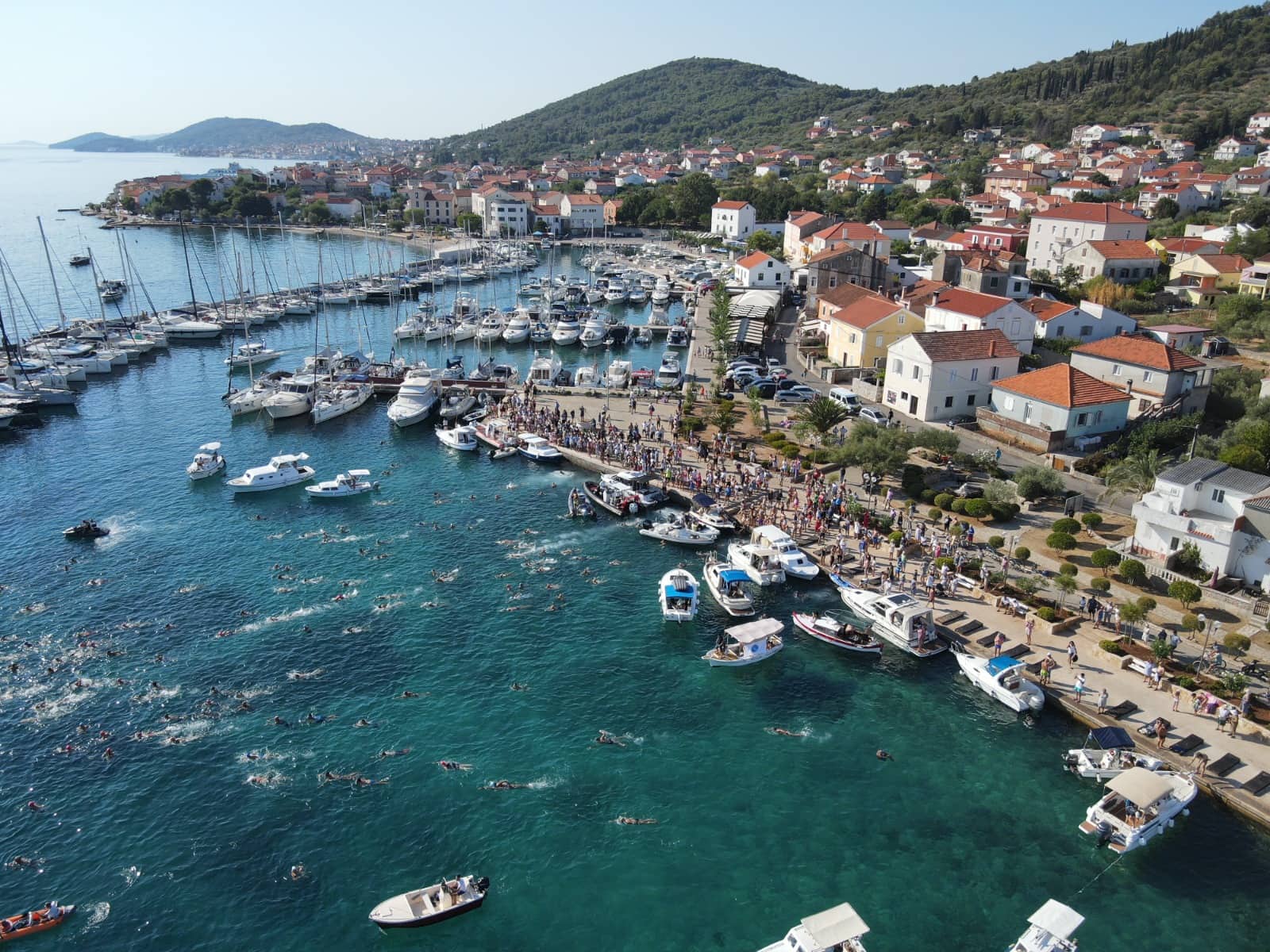 Kolega-po-tempu Mišel i ja dolazimo u Preko onim u 6:20. Želimo na miru popiti kavu i sve laganini. Većina ekipe stiže onim u 7:35. Od 8 sati nadalje vrijeme ubrzava i za čas stojimo na rivi u kupaćim gaćicama/kostimu, s čip-narukvicom oko zapešća i ispisanim brojem na ramenu. Stvari smo predali svojim barkajolima.