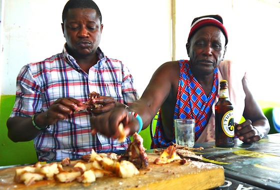 S vozačem i njegovom suputnicom svratio sam u restoran gdje sam pojeo prvi kenijski obrok, popio prvu kenijsku pivu, i popričao s prvim pripadnikom Masai plemena na kojeg sam naletio u Keniji.