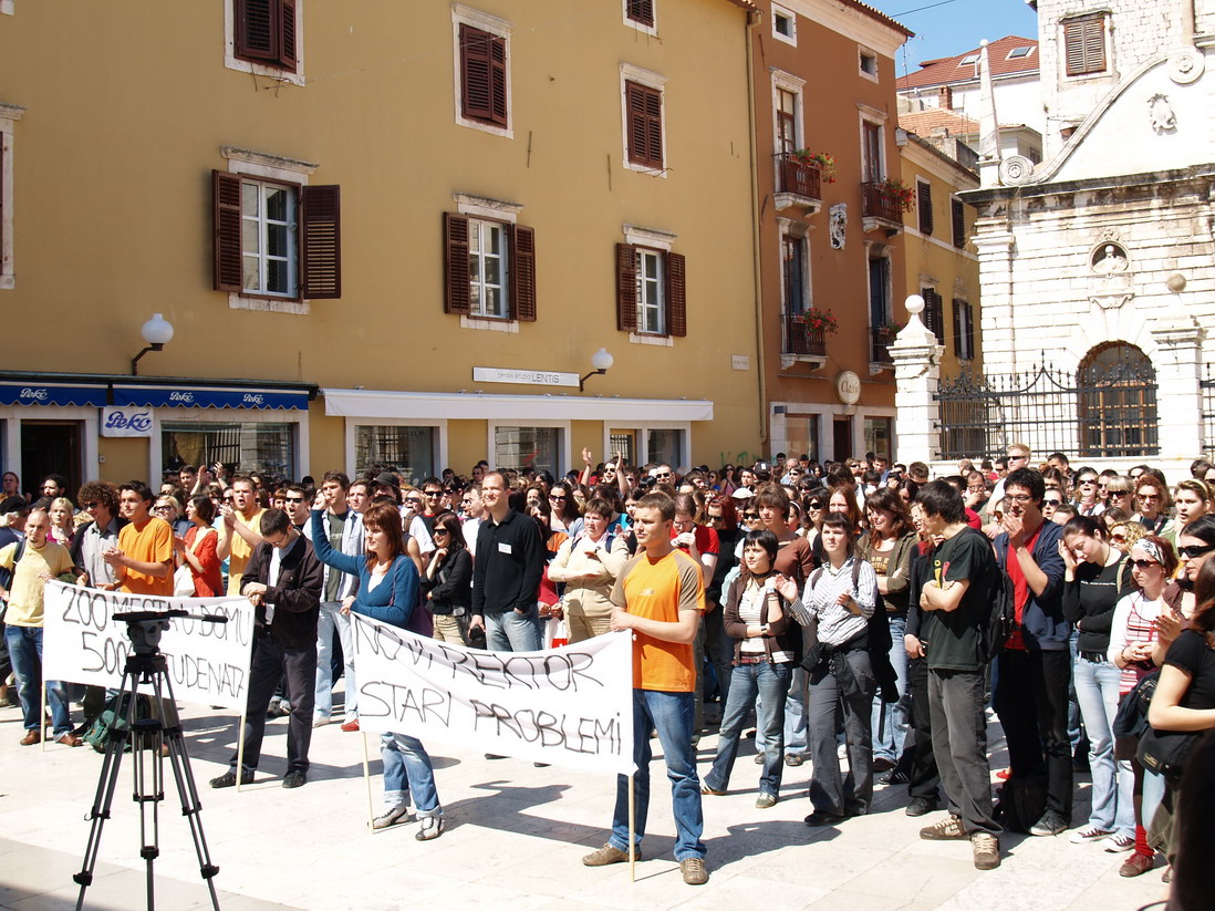 Još jedna stvar koja me muči je bojazan da ni u Hrvatskoj nema tih sto pedeset tisuća studenata o kojima se priča. Lako za Zadar, ali što ako nam mažu oči na državnoj razini? Ministarstvo obrazovanja je radi recesije i ušteda moralo smanjiti svoj proračun za gotovo milijardu kuna, a od studenata i studentskih organizacija niti riječi. Ništa!