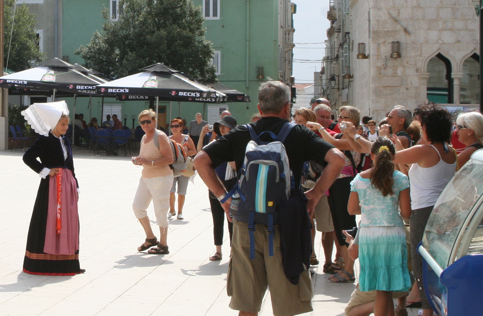 No, oduševljenje kakvo je među grupom Nijemaca izazvala slučajna pojava djevojke u nošnji na paškom Trgu Petra Krešimira IV ipak se ne vidi često.