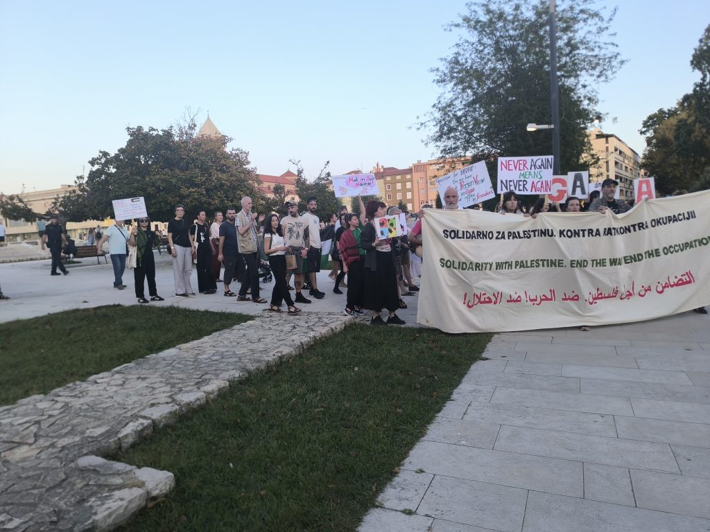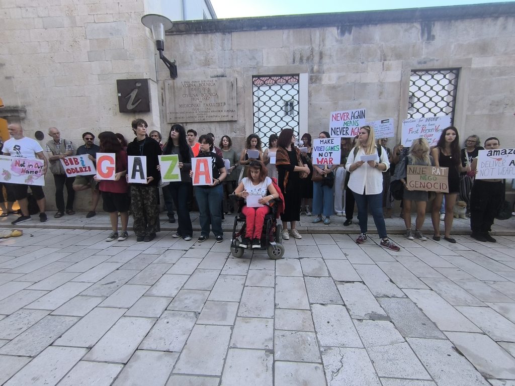Kako je i najavljeno, jučer je ispred atrija palače Cedulin u 18:30 sati započeo je mirni prosvjed građanskih inicijativa Zadar za Gazu i Inicijativa za slobodnu Palestinu. Prosvjed, koji je čuvala i policija, je u prvom redu okupio mlade ljude kojima su podršku dala prepoznatljiva lica kulturne zadarske scene.