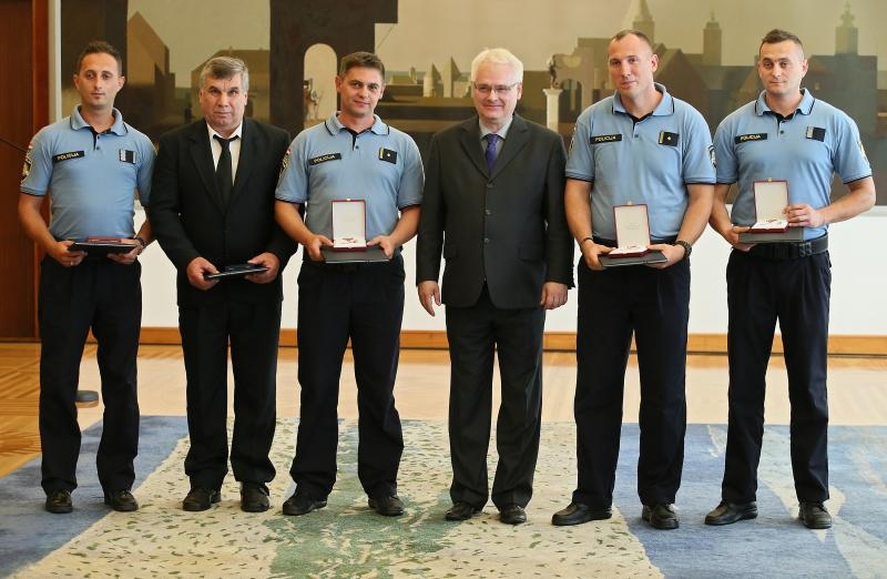 Odličje Reda hrvatskog trolista za osobite zasluge za RH stečene u iznimnim okolnostima u miru predsjednik Josipović uručio je Domagoju Andrinu, Ivanu Kopčiću, Marku Marojeviću i Dragi Paviću.