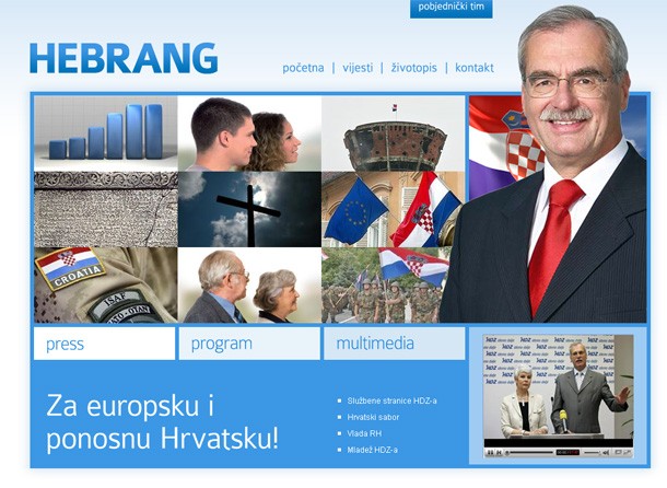 Web stranica Andrije Hebranga jedina je ponešto drukčija od ostalih stranica u ovom pregledu jer jedina ima neki oblik uvodne stranice koja ne nudi ništa u sadržajnom smislu, već vas vodi na pojedine elemente Hebrangovog programa. Uz ‘razlomljeni’ izbornik te spartansko i pomalo nespretno grafičko rješenje, sve skupa ostavlja najlošiji dojam od svih ovdje spomenutih stranica. Sadržajno, svi osnovni dijelovi su tu: program, kontakt informacije, biografija, dio namijenjen medijima i novosti. No, osim golih osnova, stranica Andrije Hebranga ne nudi baš puno.