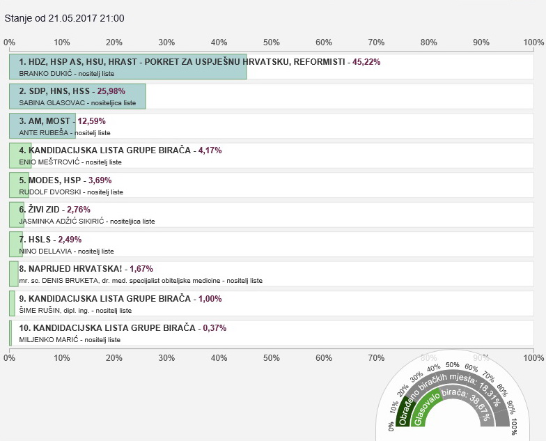 Glasovanju je pristupilo 38,57 posto upisanih birača a obrađeno je 18,31 posto biračkih mjesta.
