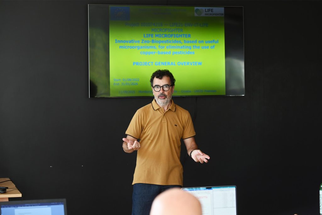 Na Sveučilištu u Zadru održava se sastanak nadzora projekta LIFE MICROFIGHTER, na kojem se raspravlja o ciljevima, dosadašnjim rezultatima i planiranim aktivnostima. Projekt je usmjeren na smanjenje uporabe bakra u zaštiti bilja pronalaskom prihvatljivije zamjene za okoliš, u ovom slučaju zeolitom koji nosi živu komponentu, soj bakterije Pseudomonas sp. DSL65.
