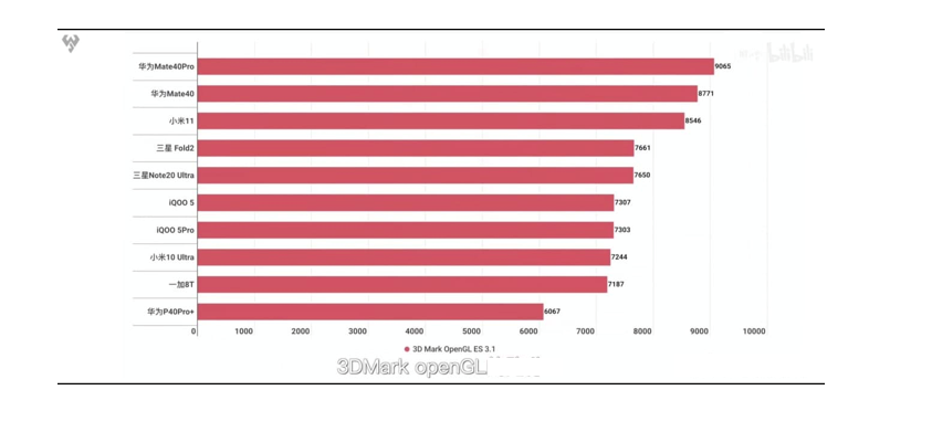 Rezultati referentne vrijednosti 3D Mark OpenGL ES 3.1. pokazuju da GPU u HiSilicon Kirin 9000 nije šala. Postigao je 9065 bodova u Mate 40 Pro. Na drugoj strani Snapdragon 888 u Xiaomi Mi 11, postigao je 8546 bodova.
