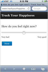 Aplikacija, prikladno nazvana Track Your Happiness (Prati svoju sreću) kontaktira korisnike iPhonea nekoliko puta dnevno u različitim vremenima kako bi ih pitala kako se osjećaju i što rade u trenutku dok odgovaraju na ova pitanja.
