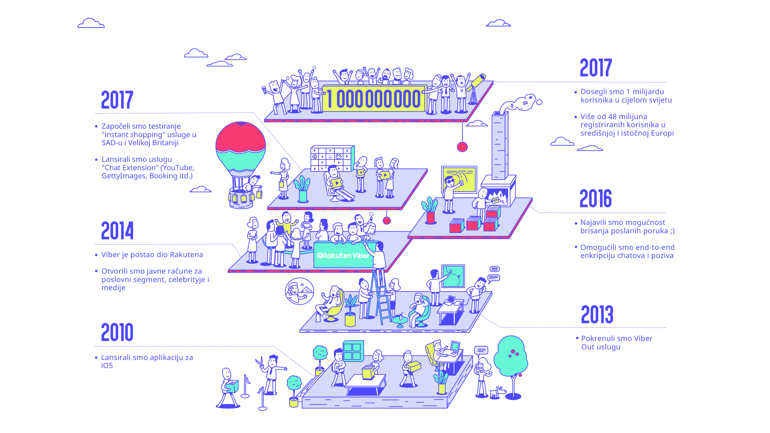 Viber, jedna od vodećih svjetskih aplikacija za razmjenu poruka, razvijena od strane tvrtke Rakuten Viber, slavi svoju 7. godišnjicu postojanja, ponovno ističući da im je cilj, prije svega, besplatno i sigurno spajati ljude širom svijeta – bez obzira tko su ili odakle dolaze. Napori koje su uložili kako bi ostali posvećeni tim vrijednostima isplatili su se kroz značajan porast broja korisnika i prihoda, a sve to bez zarade na prodaji korisničkih podataka, što predstavlja velik izazov i drugim tvrtkama iz te sfere.