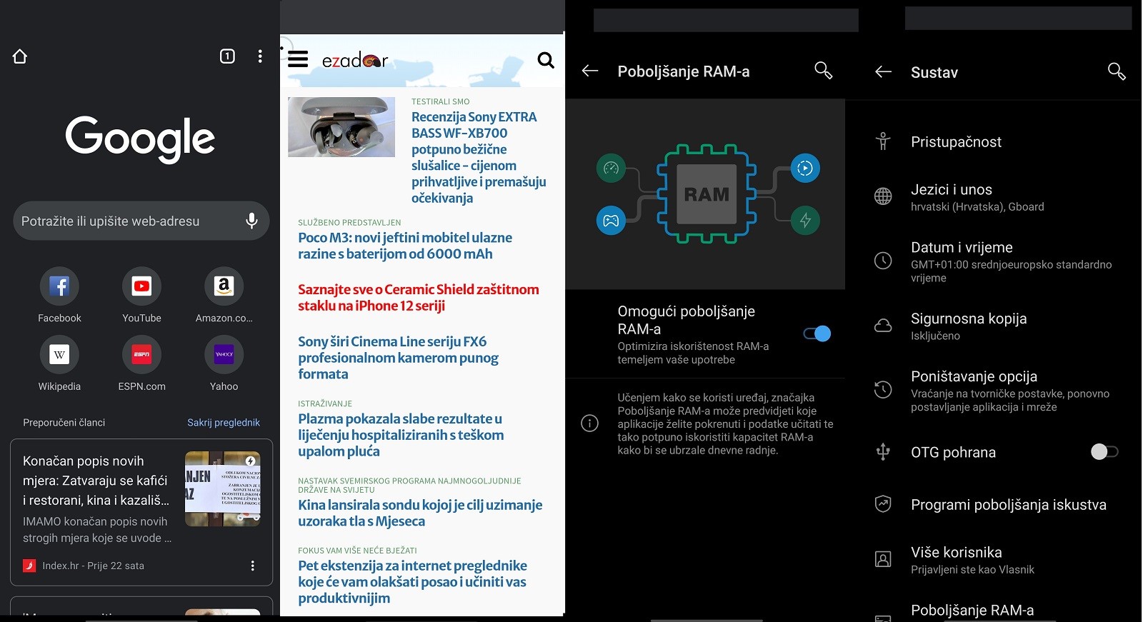 - Memorija: LPDDR4x RAM-a 6 GB, interna (UFS 2.1) 256 GB + Micro