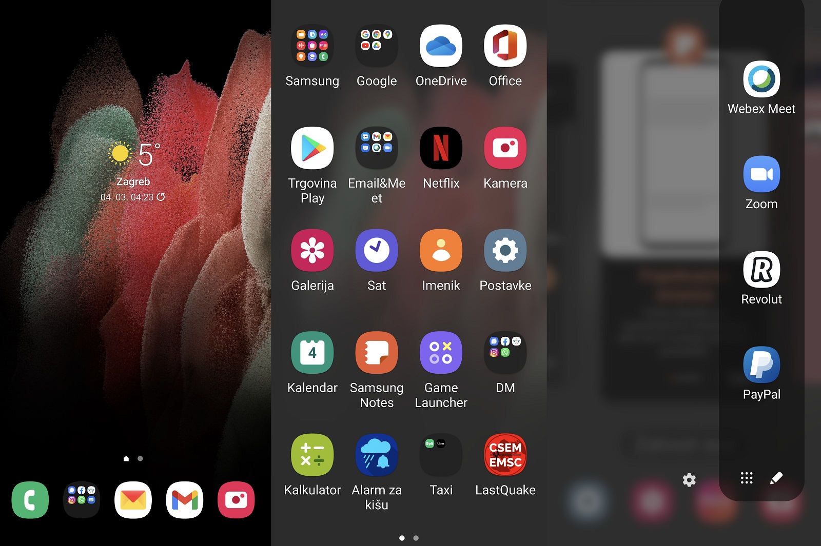 Tu je i meni jedna od praktičnijih funkcija – Edge zaslon koji omogućava postavljanje nekih aplikacija na njegov rub kako bi se brzo pokrenule i lakše dohvatile. Svakako treba spomenuti i DeX funkciju koja omogućava korištenje mobitela kao punopravnog računala povezivanjem zaslona, miša i tipkovnice.