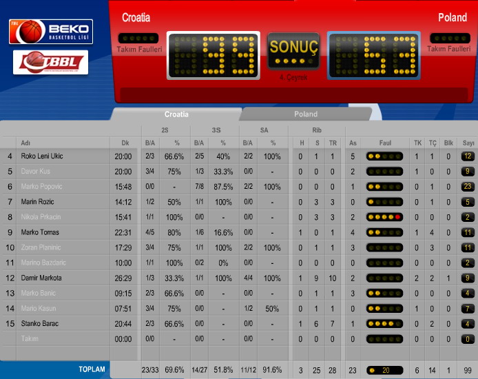 Hrvatska – Poljska 99:53 (23:13, 25:15, 19:6, 32:19)