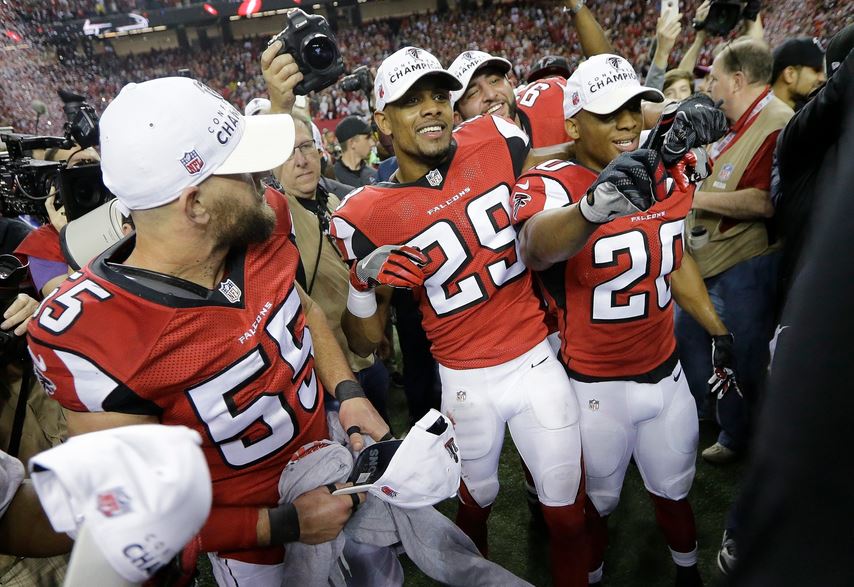 Momčad Falconsa ove je sezone doživjela neočekivani procvat nakon što u prethodne tri nije uspijevala osigurati plasman u doigravanje. Štoviše, 2013. i 2014. je završila s učincima dalekom ispod 50 posto (4-12 i 6-10), a tada je ulogu glavnog trenera preuzeo Dan Quinn, dotadašnji defenzivni koordinator Seattle Seahawksa. U prvoj godini pod Quinnovim vodstvom Falconsi su stigli do omjera 8-8, da bi ove sezone ostvarili učinak od 11-5 i potom stigli do dvije uvjerljive pobjede u doigravanju (36-20 protiv Seattlea i 44-21 protiv Green Baya). No, osim Quinna, velike zasluge za nagli uspon momčadi pripisuju se i vrhunskom ofenzivnom koordinatoru Kyleu Shanahanu, kojemu je odličan rad u Atlanti priskrbio posao glavnog trenera u San Francisco 49-ersima sljedeće sezone.