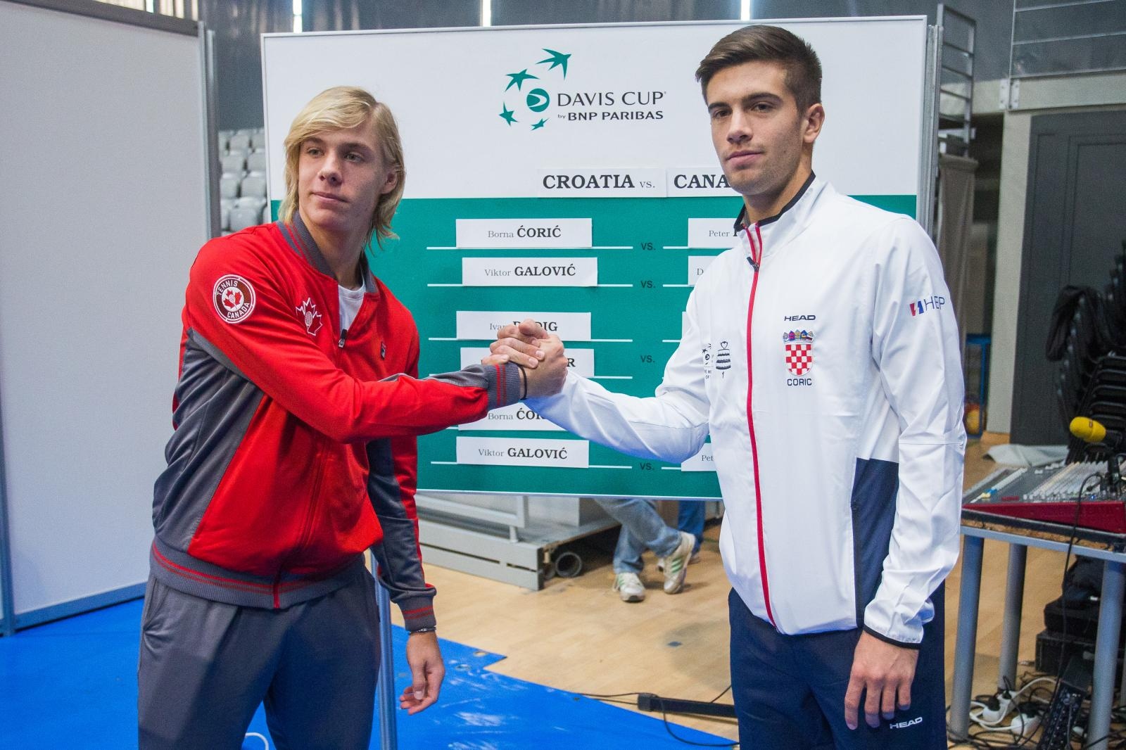 Ždrijebom je odlučeno da će u petak, od 14 sati, dvoboj otvoriti Borna Ćorić i Peter Polansky (ATP – 141.), dok će se u drugom dvoboju sastati Viktor Galović (ATP – 181.) i prvi igrač kanadske reprezentacije 18-godišnji Denis Shapovalov (ATP – 48.).