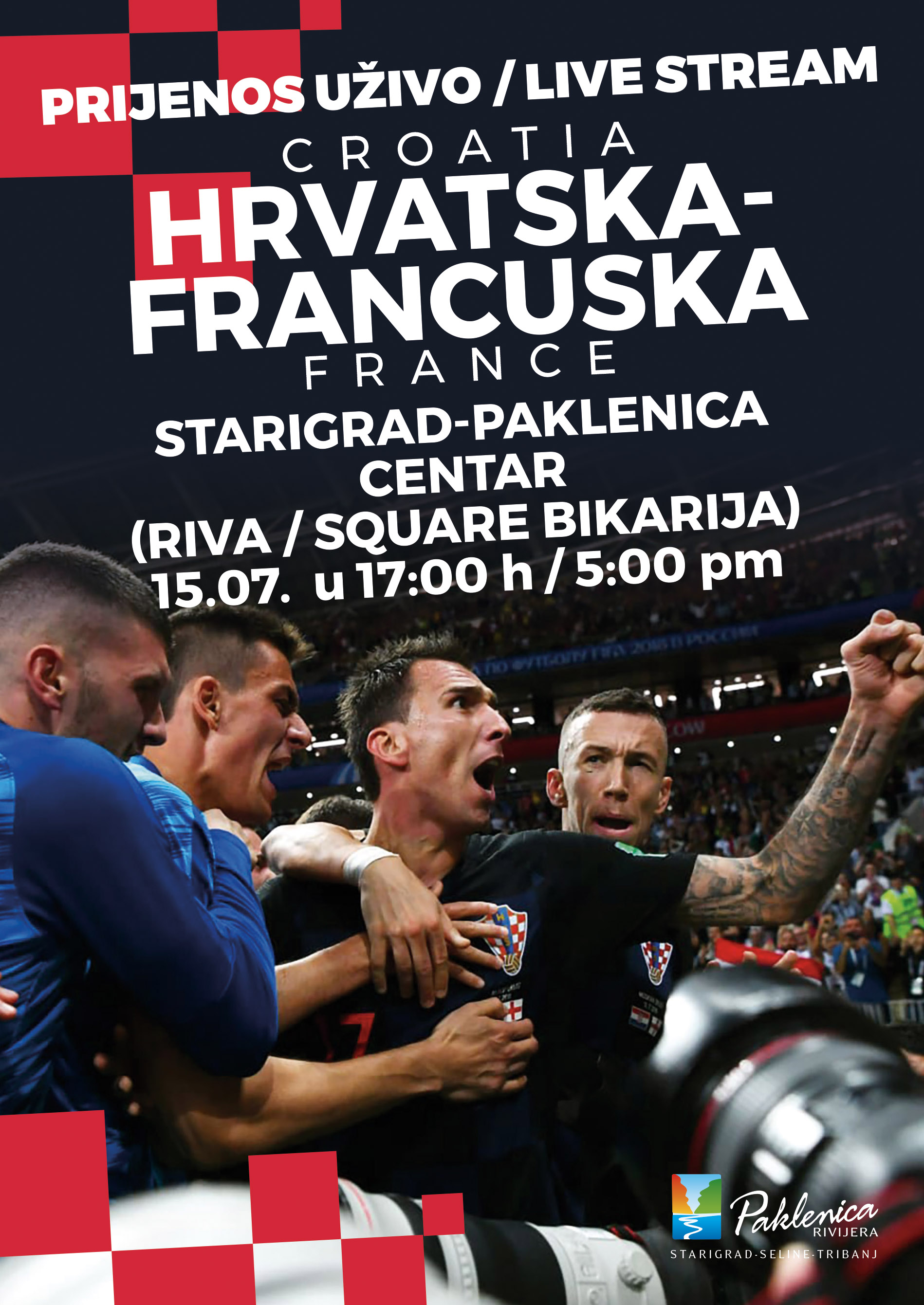 Prijenos za Hrvatsku povijesne finalne utakmice Svjetskog nogometnog prvenstva 2018. moći će se pratiti i u Starigradu-Paklenici i to na rivi Bikarija u centru mjesta, u nedjelju 15. srpnja, od 16.00 h