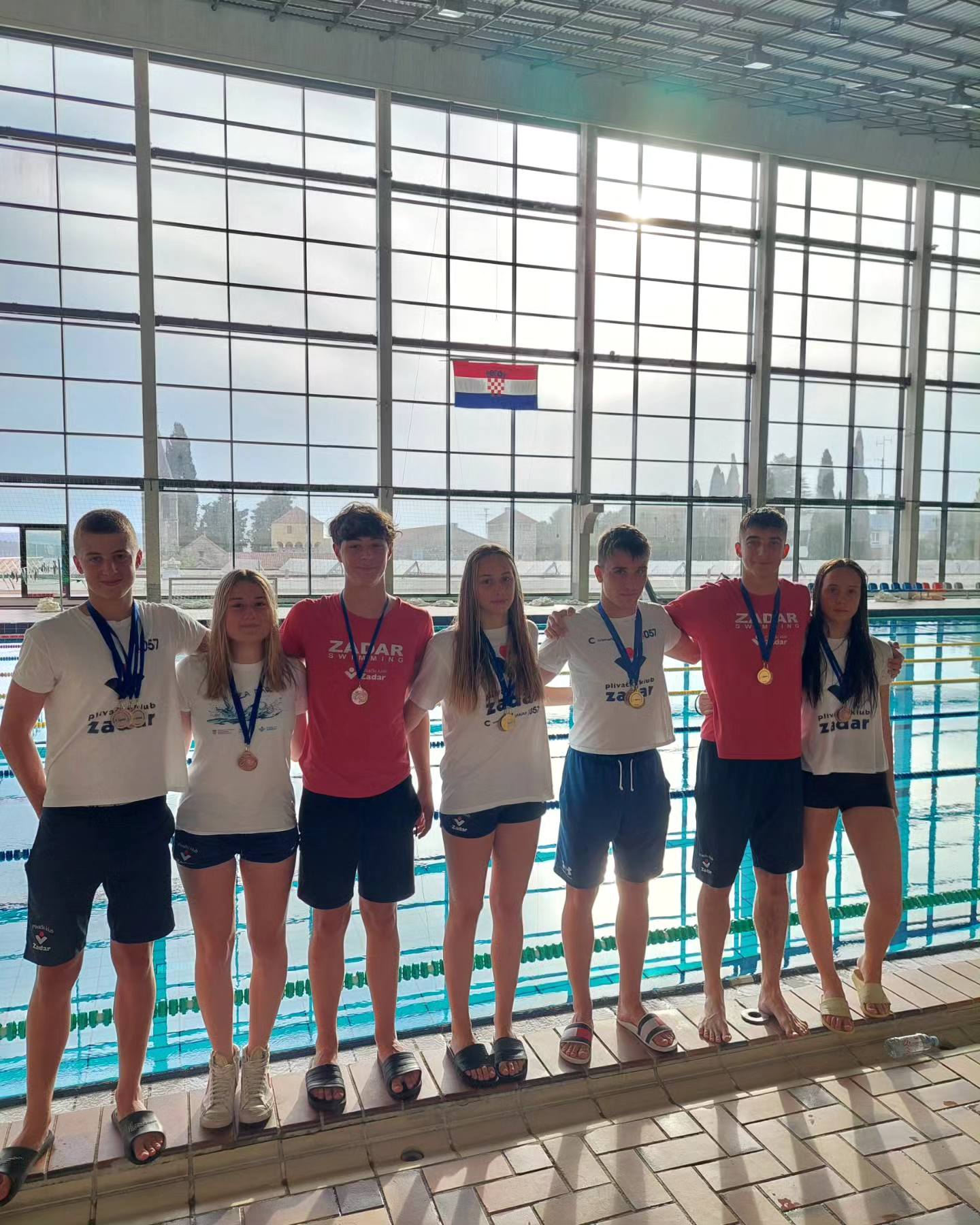 U štafetnim utkama, srebrna je bila ženska mlađe kadetska štafeta na 4x50m slobodno (2:08.33) u sastavu: Ana Knežević, Aria Bončić, Adriana Knežević, Laura Župan. Brončana odličja u štafetnim utrkama osvojile su sljedeće štafete: ženska kadetska štafeta na 4x50m slobodno (2:03.98) u sastavu: Tonka Plavčić, Mia Zekanović, Mareta Mikulić, Zrna Šijaković; muška kadetska štafeta na 4x50m slobodno (1:53.40) u sastavu: Filip Župan, Toni Mršić, Tin Mršić, Paulo Sinovčić; kadetska štafeta 4x100m slobodno mixed (4:16.99) u sastavu: Filip Župan, Toni Mršić, Zrna Šijaković, Mia Zekanović; juniorska štafeta 4x100m mješovito mixed (4:39.23) u sastavu: Mia Šarić, Lovre Dellavia, Rita Herceg, Ivano Kuman.