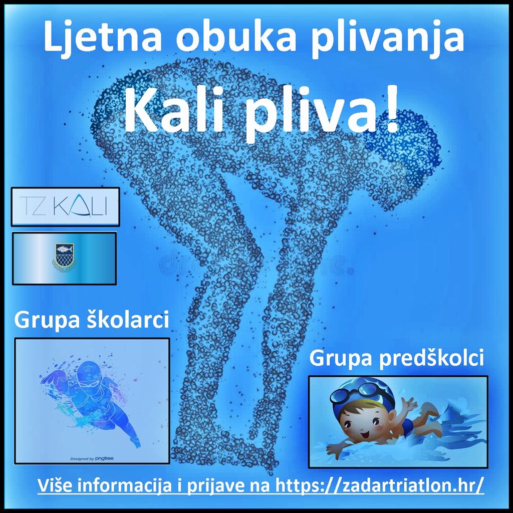 Triatlon klub Zadar najavljuje održavanje Ljetne obuke plivanja pod nazivom "Kali pliva" koja će se održati od 15. srpnja do 15. kolovoza na predivnoj plaži Batalaža u Kalima.