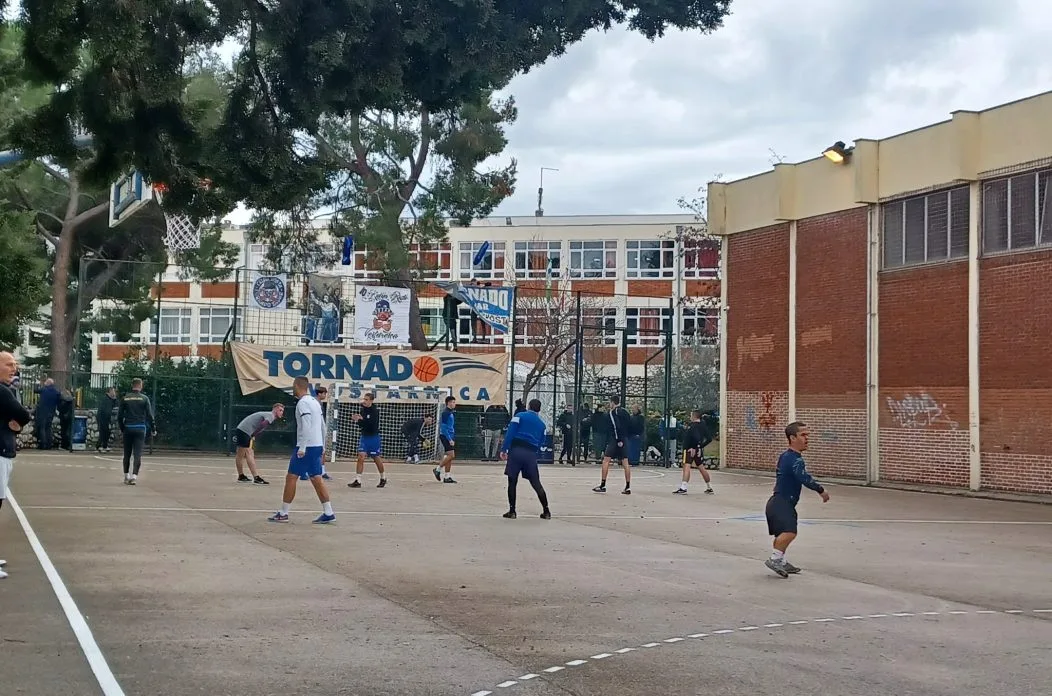 Ispred škole je niknuo šator, a igralište je već ispunjeno, čekaju se utakmice, u 13 sati još smo se zagrijavali.