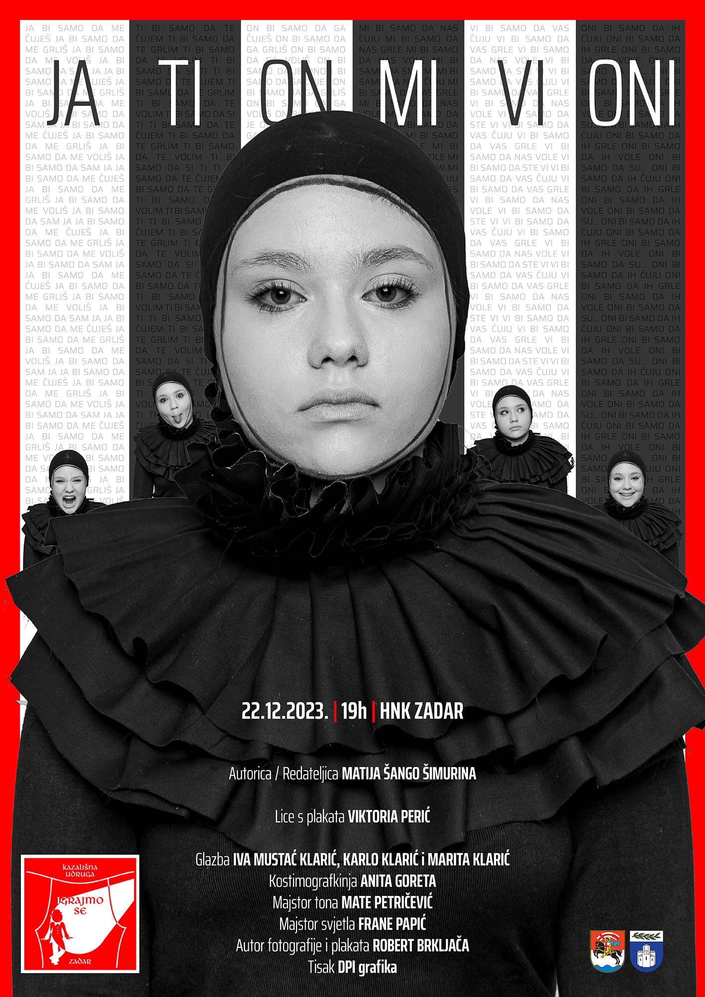Kazališna udruga Igrajmo se Zadar poziva na predstavu JA TI ON MI VI ONI i na dodjelu Zadarskog Oscara - NOBI za 2023.godinu koja će se održati u HNK Zadar, u petak, 22. prosinca s početkom u 19 sati.