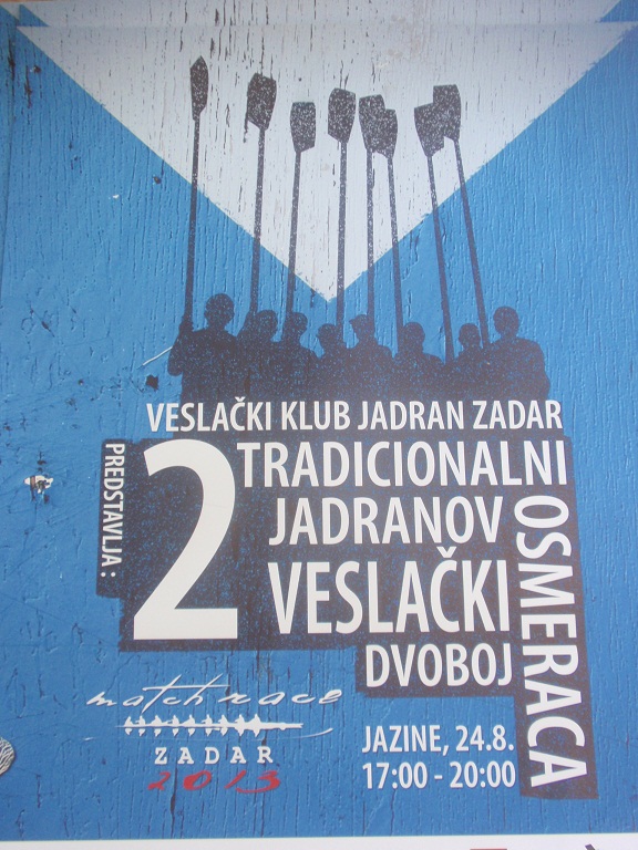 Veslački klub Jadran drugu godinu za redom organizira veslačku regatu osmeraca koja će se u subotu 24. kolovoza 2013. godine, u terminu od 17.20 do 20. 00 sati, održati u uvali Jazine.