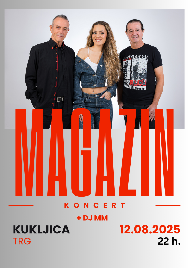 Turistička zajednica općine Kukljica najavljuje sajam otočnih proizvoda i koncert grupe Magazin, koji će se održati u utorak, 12. kolovoza 2025., na trgu u Kukljici (otok Ugljan).