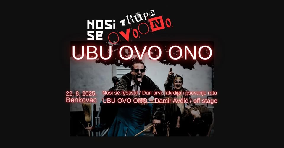 – 20.00h Ubu ovo ono, predstava Trupe OvoOno