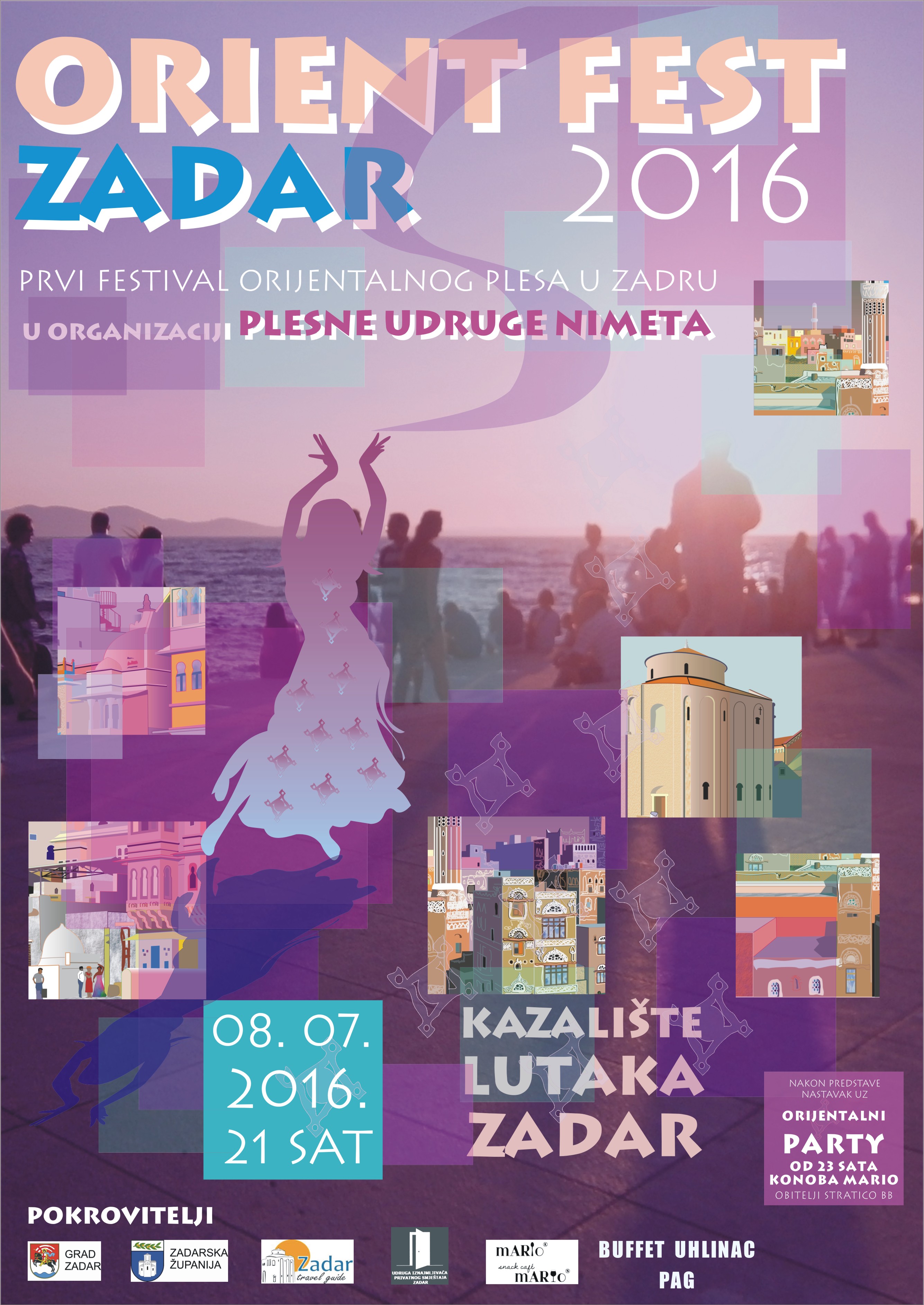 U velikoj dvorani Kazališta lutaka održat će se prvi međunarodni festival orijentalnih plesova i folklora u Zadru, kojeg će predstaviti članice različitih plesnih udruga na međunarodnoj razini, kao i Plesna Udruga Nimeta koja će predstavljati sam grad Zadar.