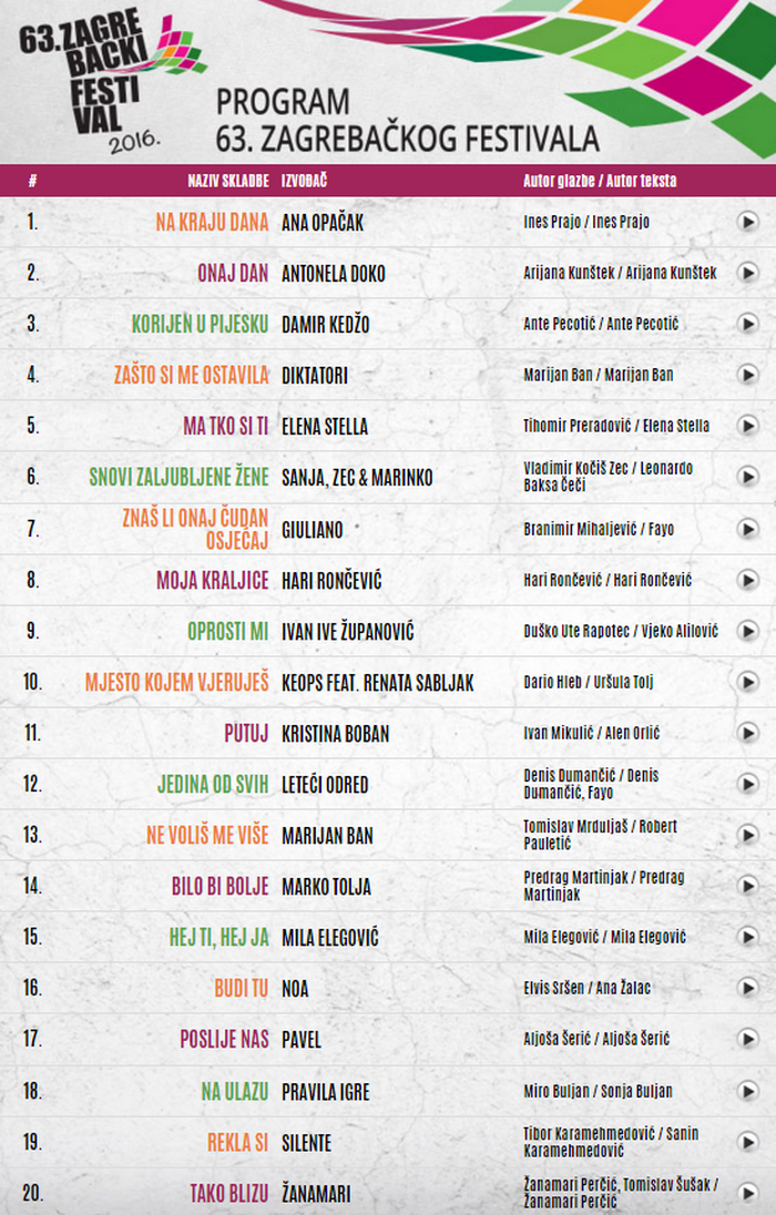 – Ovo mi je drugi nastup na Zagrebačkom festivalu. Nastupio sam i nekoliko puta na Šibenskoj šansoni s dosta uspjeha. Može se reći da imam dosta festivalskog iskustva. Zato svakako očekujem dobru zabavu i druženje sa kolegama na festivalu.