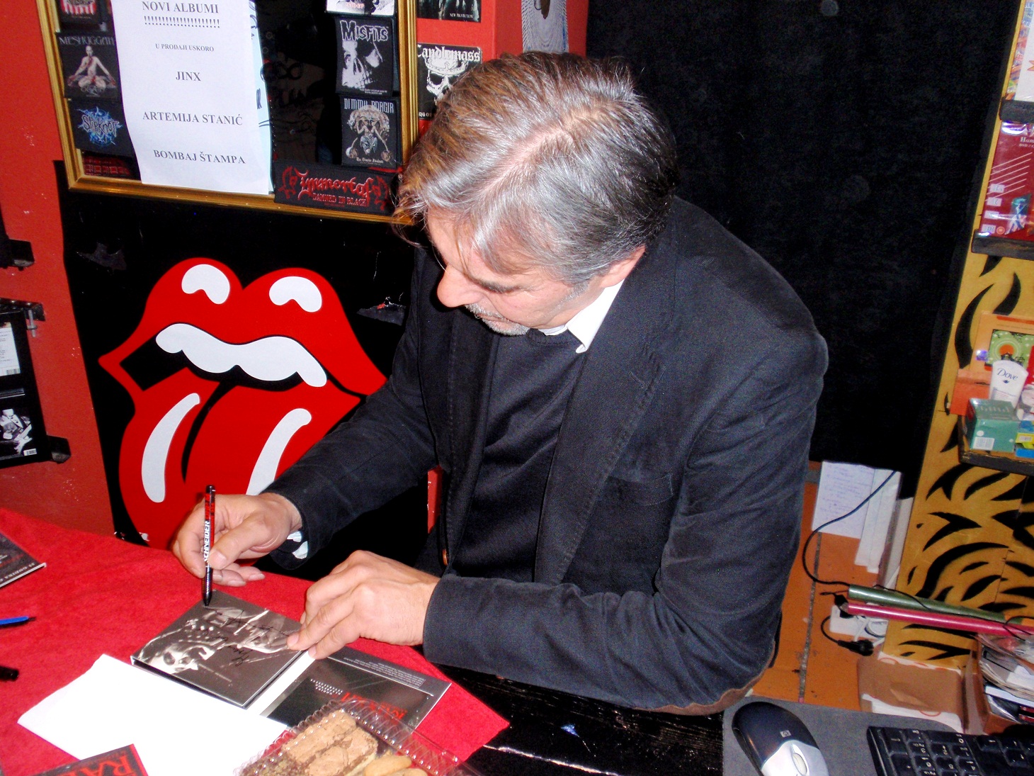 Dobro raspoložen i nasmijan, uz pozadinske latino ritmove i melodije sa svog novog albuma “Sentimiento”, Davor Radolfi je odgovarao na pitanja novinara i fanova, slikao se s njima, davao izjave i potpisivao albume.