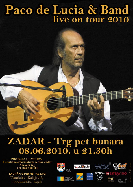 Paco de Lucía u Zadar stiže sa svojim ansamblom koji čine vrsni glazbenici Niño Josele na gitari, Antonio Serrano na klavijaturama, Alain Perez na basu i Piranha na perkusijama, vokalisti Cristo Heredia i David de Jacoba, te plesač Farruco.