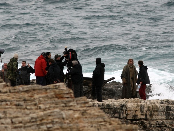 Cage je jučer u ranim jutarnjim satima sletio u pulsku zračnu luku, a čekala ga je ekipa iz Mađarske, gdje su snimali veći dio filma. Zatim su se uputili prema rtu Kamenjak u Premanturi, a ni kiša ni valovi nisu ih omeli u snimanju scena iz srednjovjekovnog spektakla.