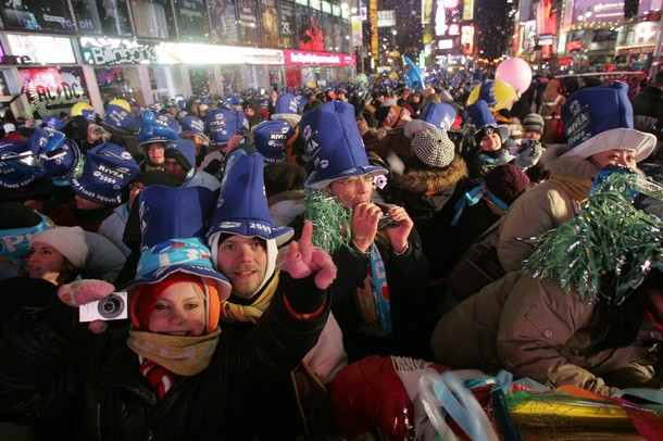Promrznuto ali razdragano mnoštvo, među kojim brojni turisti s jarko obojenim šeširima i golemim naočalama u obliku broja 2009., okupilo se oko Times Squarea br. 1 kako bi sudjelovali u svečanosti koju su predvodili bivši američki predsjednički par Bill i Hillary Clinton, te newyorški gradonačelnik Michael Bloomberg sa suprugom. Domaćin najgledanijeg TV showa ‘American Idol’ Ryan Seacrest vodio je muzički program u kojem su nastupili Jonas Brothers, Ludacris, Taylor Swift, Parachute, USO i Lionel Richie.