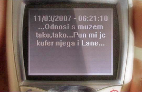 Jedna od navodnih Vlatkinih SMS poruka