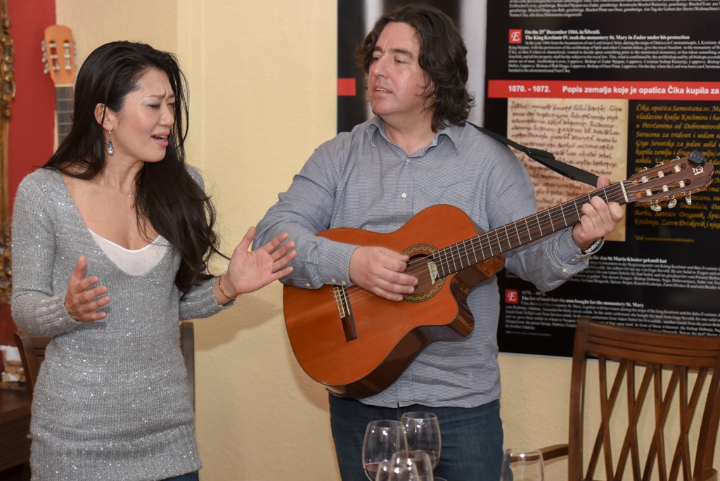 Kada se sasvim opustila u društvu zadarskih novinara u “Kraljevskim vinogradima”, japanska jazz pjevačica Minami Kayoko uz gitarsku pratnju otpjevala je svoj omiljeni i besmrtni meksički standard “Bésame Mucho”, a potom i tradicijske japanske pjesme. Njezin vokal odmah je osvojio sve, baš kao i njezina šarmantna osobnost i vedri duh.