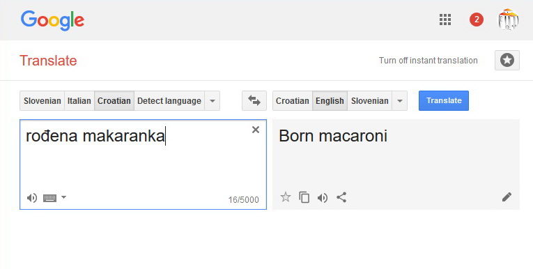 Naime, pokušate li dobiti engleski prijevod “rođena zadranka”, pojavit će se engleski “born bitch”, što bi se na hrvatskom prevelo “rođena kuja”.