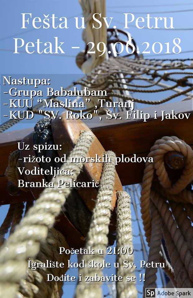 U petak, 29. lipnja, u Svetom Petru održat će se dalmatinska fešta uz glazbu i degustaciju rižota.